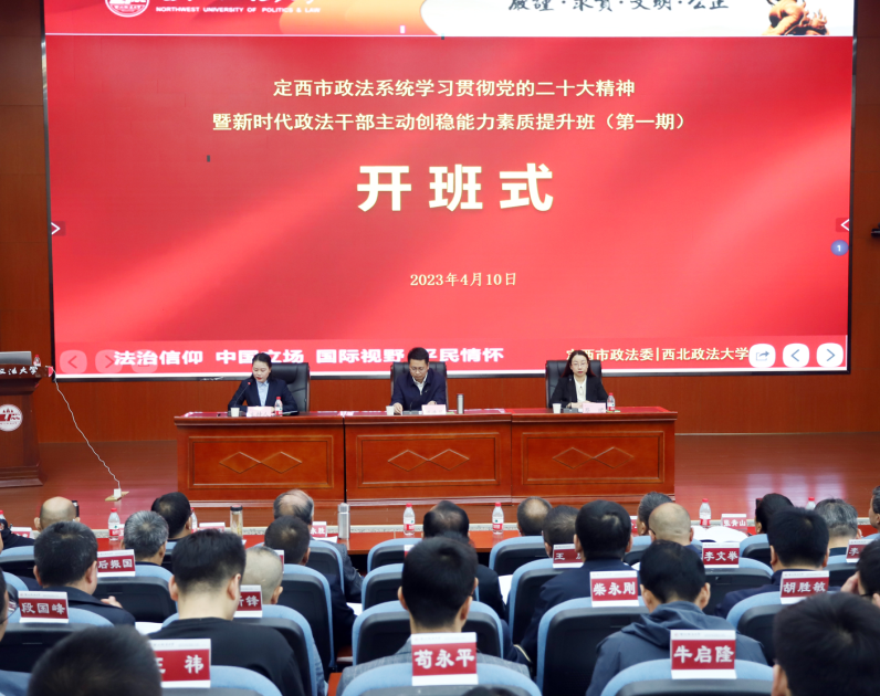 2023年4月10日上午,定西市政法系统学习贯彻党的二十大精神暨新时代政法干部主动创稳能力素质提升班(第一期)在我校雁塔校区2号教学楼1楼学术报告厅顺利开班。定西市委政法委副书记顾进展、艳照门