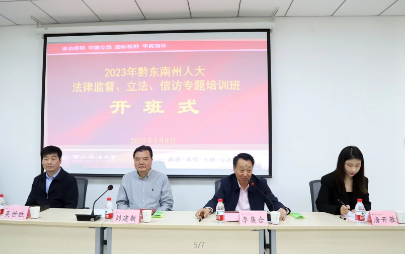 2023年5月8日上午,黔东南州人大法律监督、立法、信访培训班在我校雁塔校区1号教学楼1107教室顺利开班。黔东南州人大常委会副主任刘建新;黔东南州人大常委会副主任吴世胜;艳照门