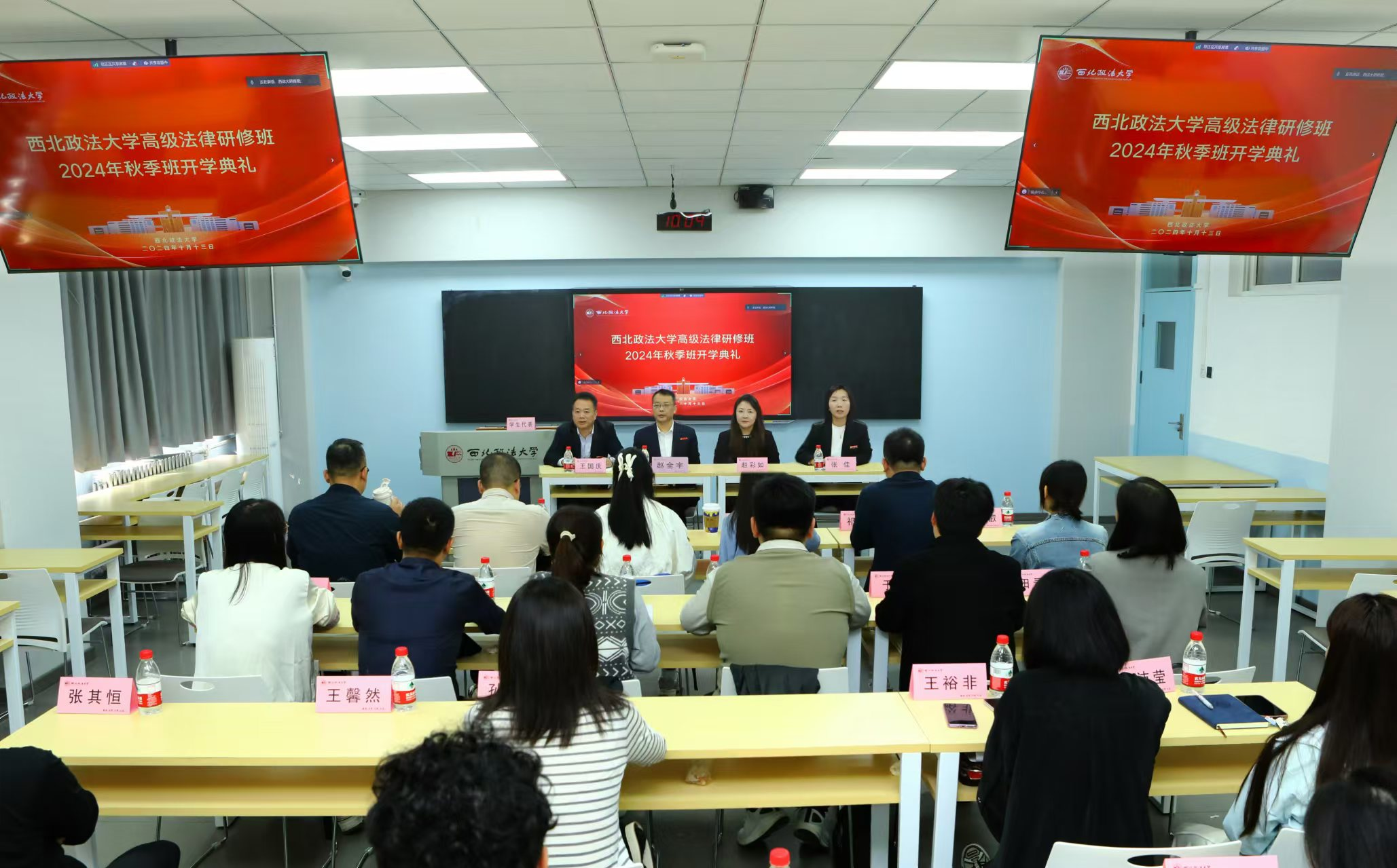10月13日上午,艳照门 高级法律研修班2024年秋季班开学典礼在雁塔校区3506教室举行。艳照门 党委委员、副校长赵全宇,研究生院副院长、研工部副部长赵彩如,班主任张佳以及59名同学通过线上和线下参加典礼。仪式由艳照门 副院长、培训中心副主任王国庆主持。