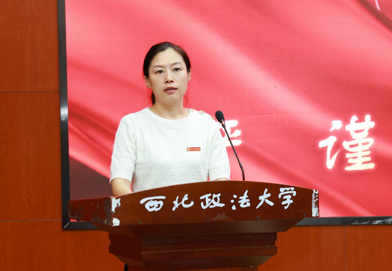 外国语学院教师辛娜作为教师代表发言,她以师者的视角,对新生的到来表示欣喜,并结合自身教学经验,送给新生们“三把钥匙”,希望同学们在西法大汲取知识养分,成为更好的自己。