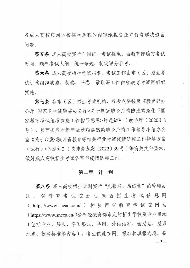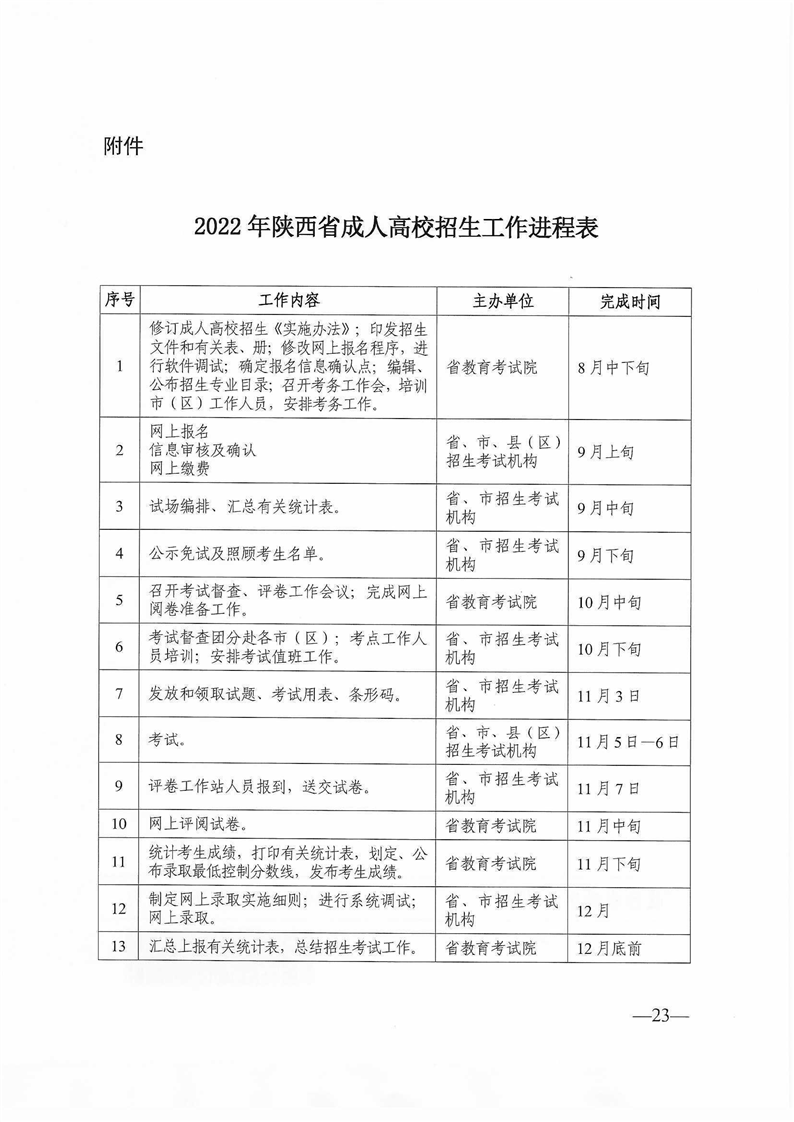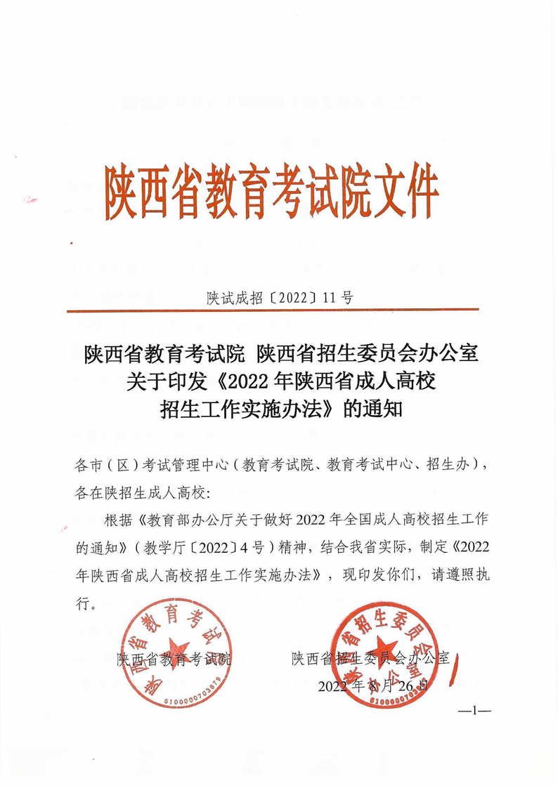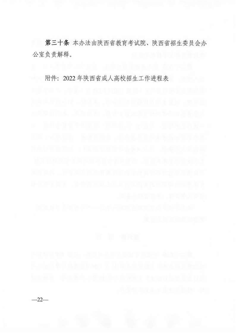 陕西省教育考试院陕西省招生委员会办公室关于印发《2022年陕西省成人高校招生工作实施办法》的通知