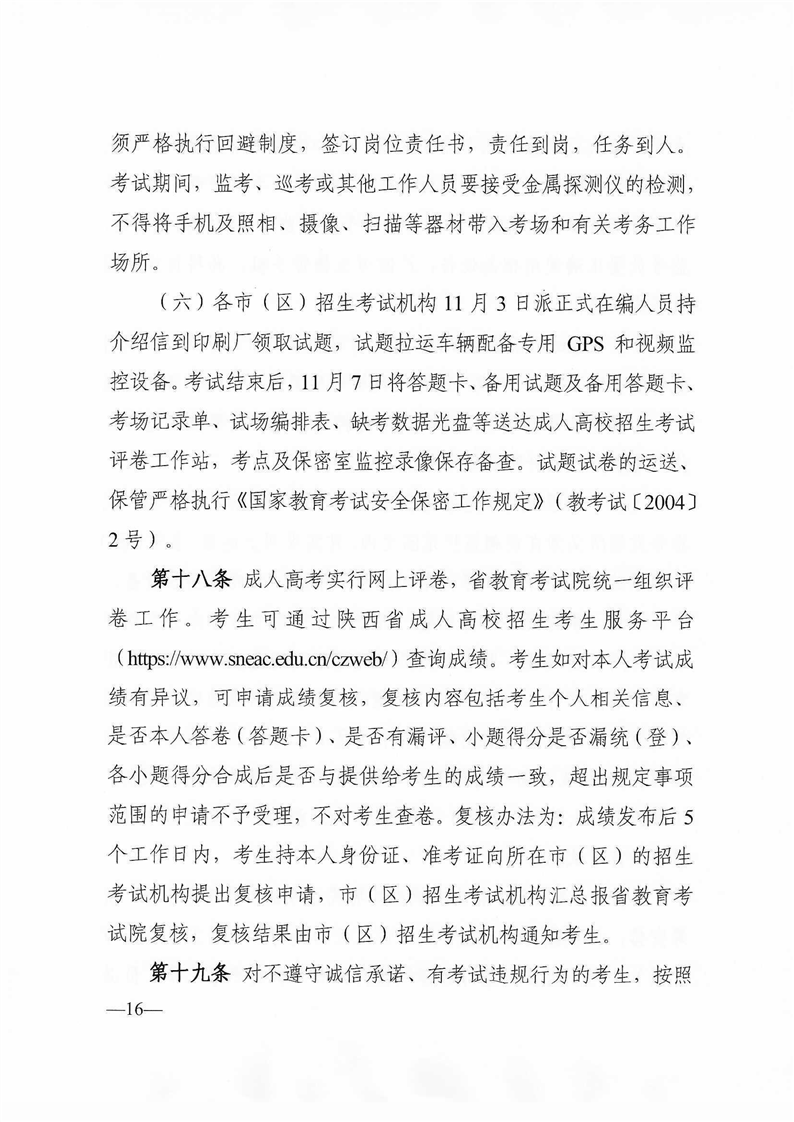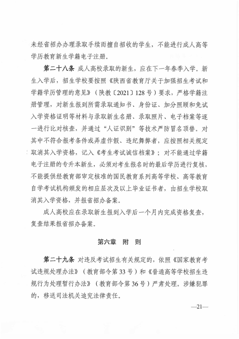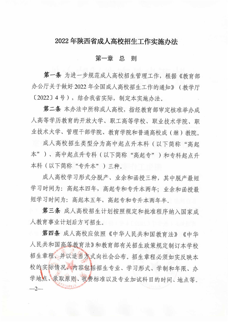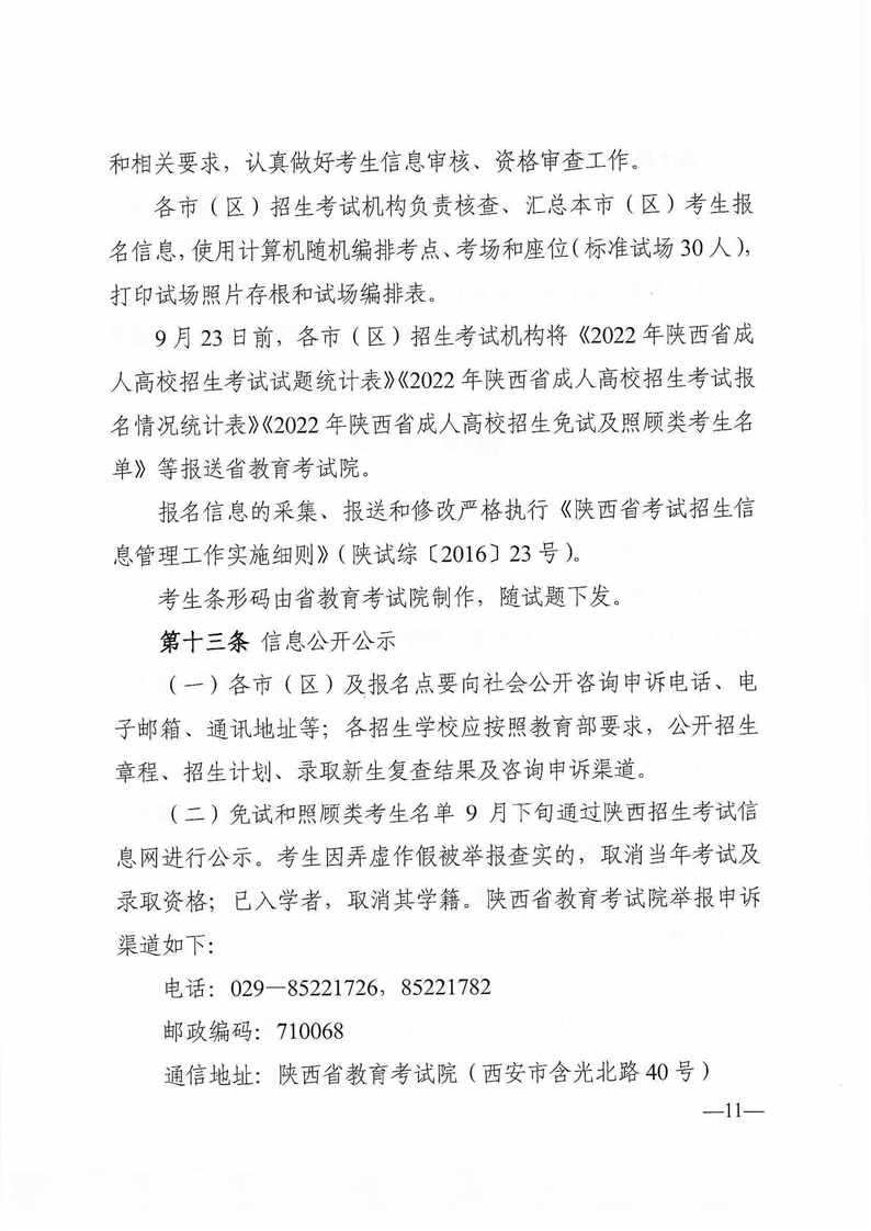 陕西省教育考试院陕西省招生委员会办公室关于印发《2022年陕西省成人高校招生工作实施办法》的通知
