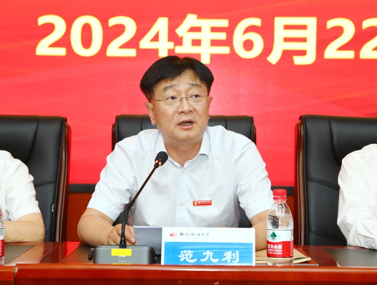 范九利代表学校向488名2024级新生表示热烈欢迎,并介绍学校历史沿革、学科优势、师资队伍、专业特色等情况。他强调,同学们要心怀理想,珍惜在校时光,利用好学校的图书资源、教学资源,将马锡五审判经验、枫桥经验等法学理论研究成果与自身的实践结合起来,读书立心,奋力逐梦,为早日实现自己的人生追求和目标打好基础。
